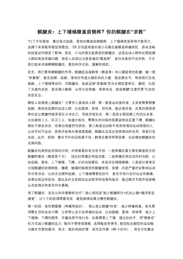 髌腱炎:上下楼梯膝盖前侧疼?你的髌腱在“求救