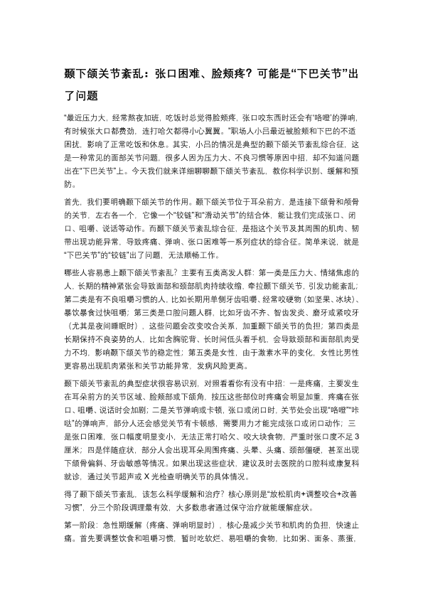 颞下颌关节紊乱:张口困难、脸颊疼?可能是“下巴关节”出了问题