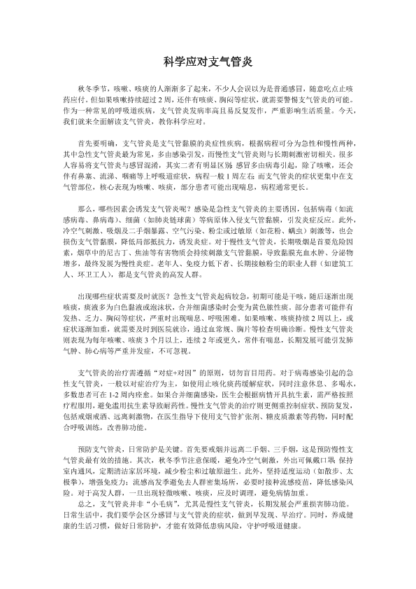 科学应对支气管炎