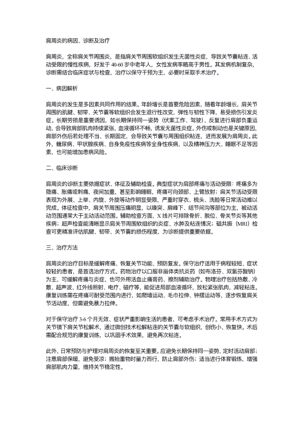 肩周炎的病因、诊断及治疗