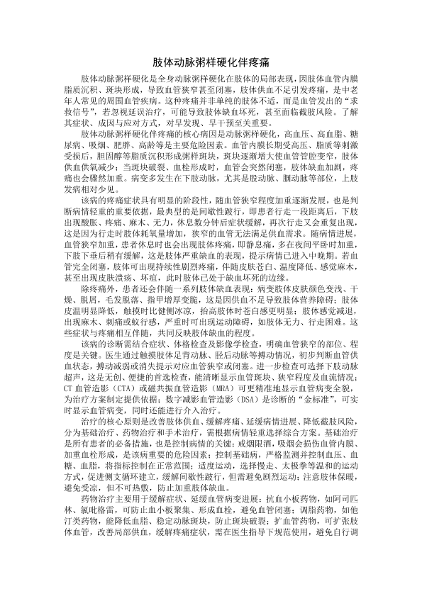 肢体动脉粥样硬化伴疼痛