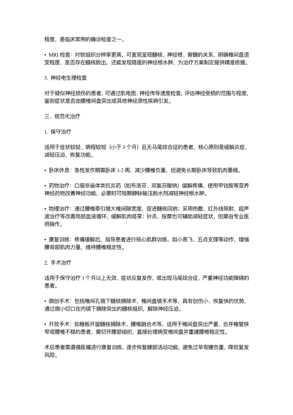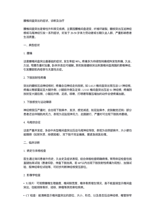 腰椎间盘突出的症状、诊断及治疗