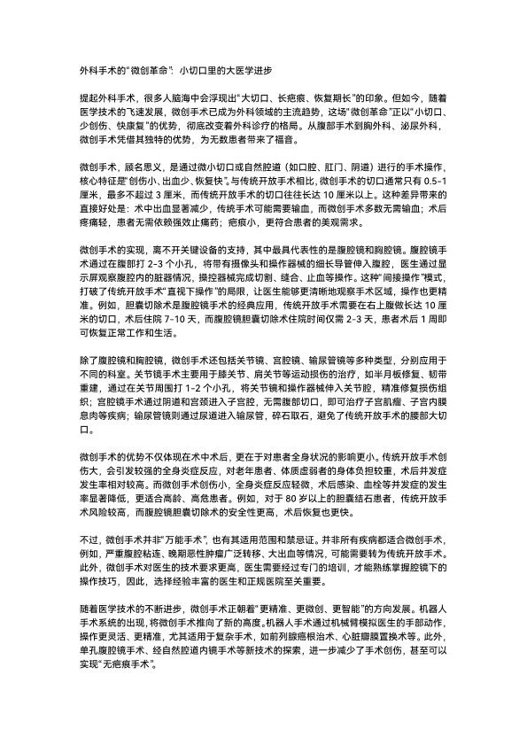 外科手术的“微创革命”:小切口里的大医学进步