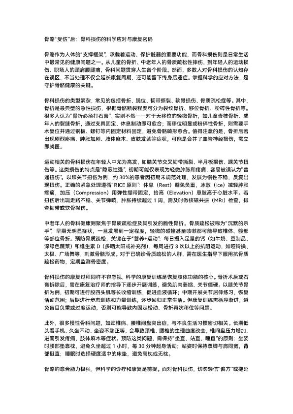 骨骼“受伤”后:骨科损伤的科学应对与康复密码