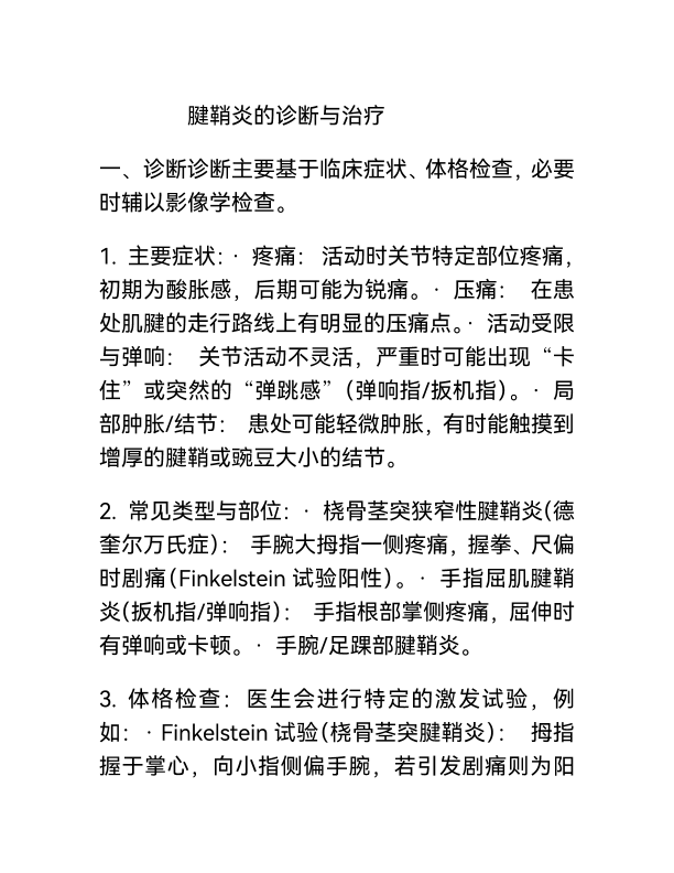 腱鞘炎的诊断与治疗