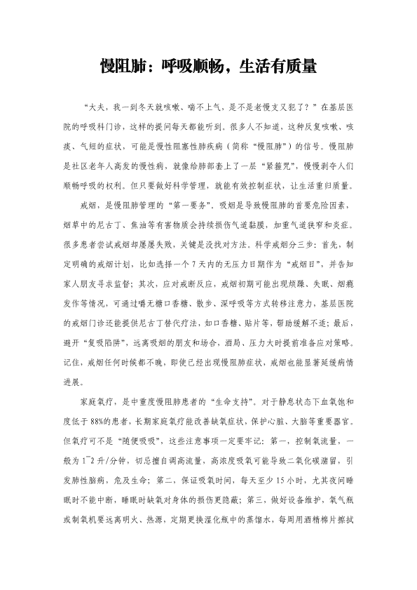 慢阻肺:呼吸顺畅,生活有质量