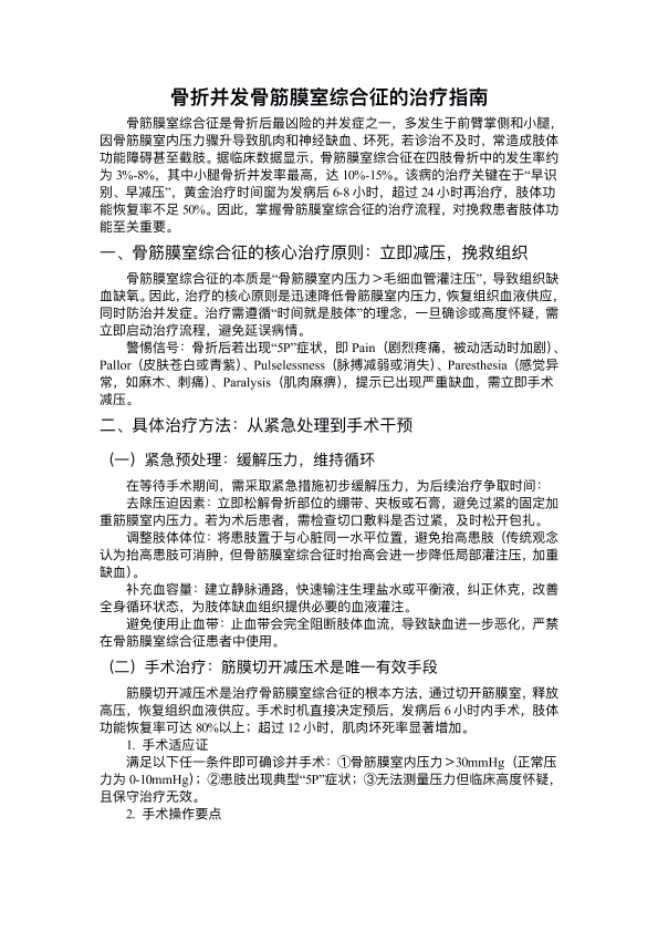 骨折并发骨筋膜室综合征的治疗指南