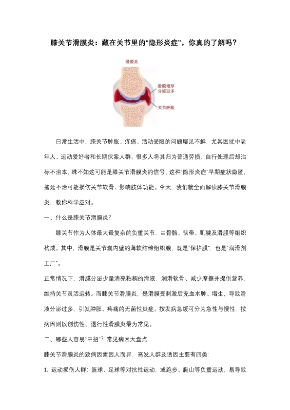 膝关节滑膜炎:藏在关节里的“隐形炎症”,你真的了解吗?