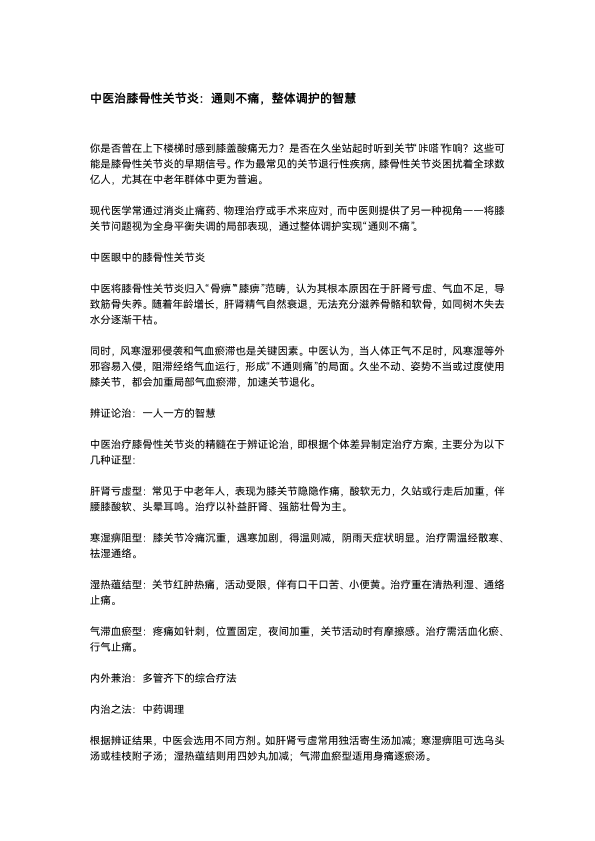 中医治疗膝骨性关节炎的智慧:通则不痛