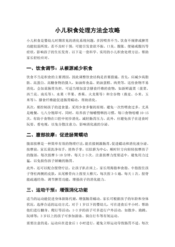 小儿积食处理方法全攻略