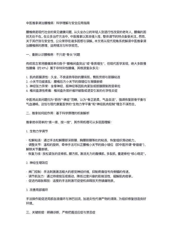 中医推拿调治腰椎病:科学理解与安全应用指南