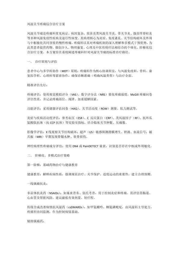风湿关节疼痛综合诊疗方案