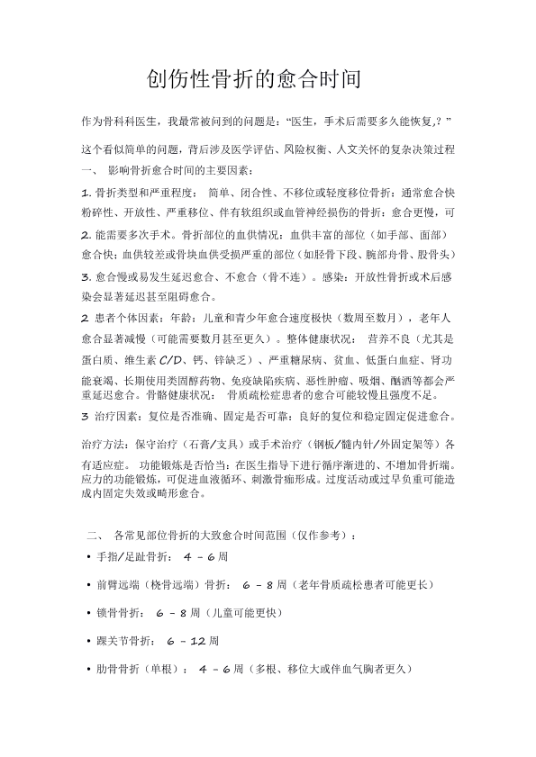 创伤性骨折愈合的时间