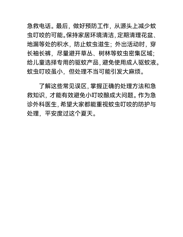 别让小叮咬酿成大麻烦:急诊外科视角下的蚊虫叮 咬误区与急救