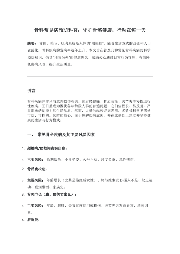 骨科常用病预防科普:守护骨骼健康,行动在每一天