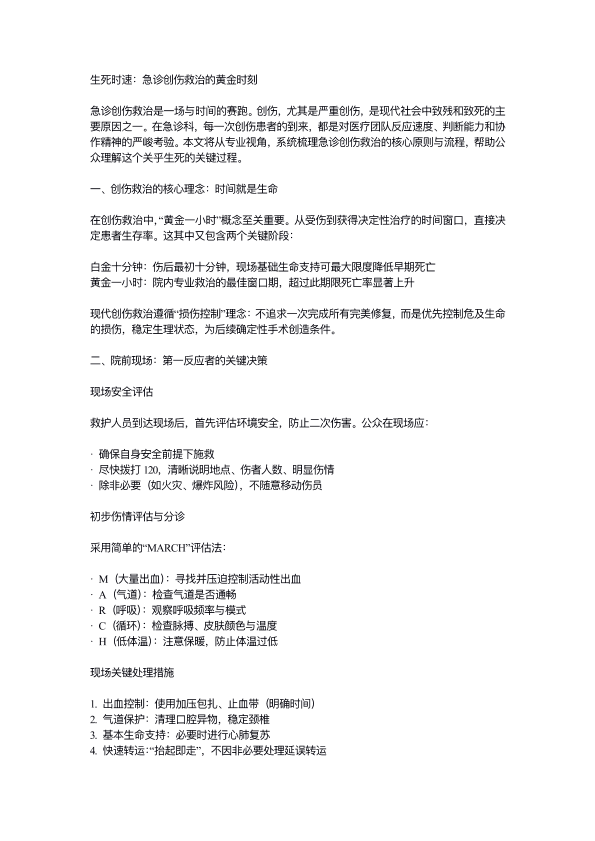 急诊创伤救治的黄金时刻