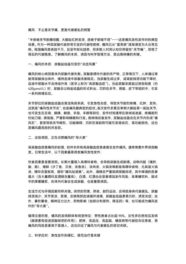 痛风的预防