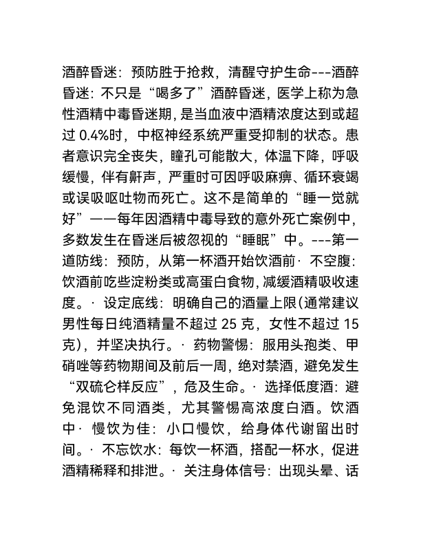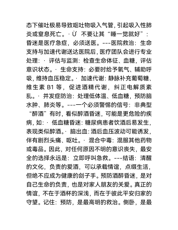 酒醉昏迷:预防胜于抢救,清醒守护生命
