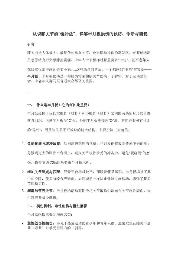 认识膝关节的缓冲垫:半月板损伤预防、诊断与康复
