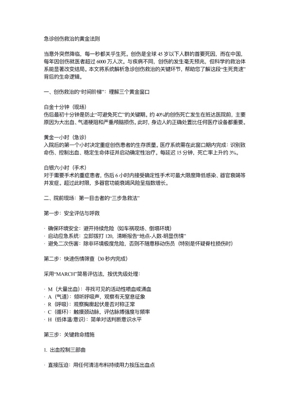 急诊创伤救治的黄金法则