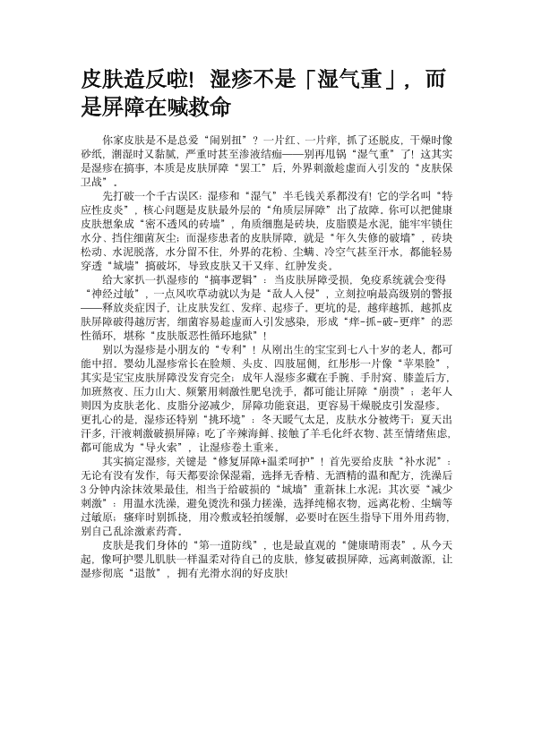 湿疹科普