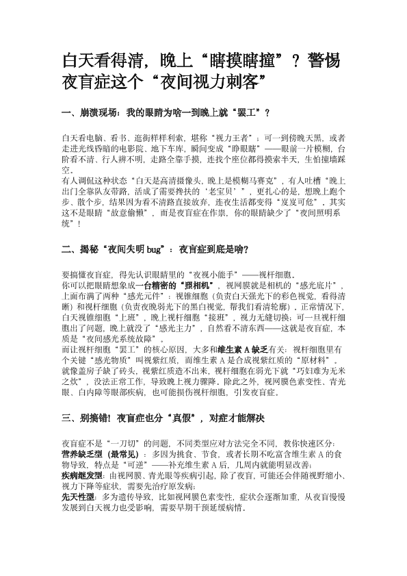 夜盲症科普