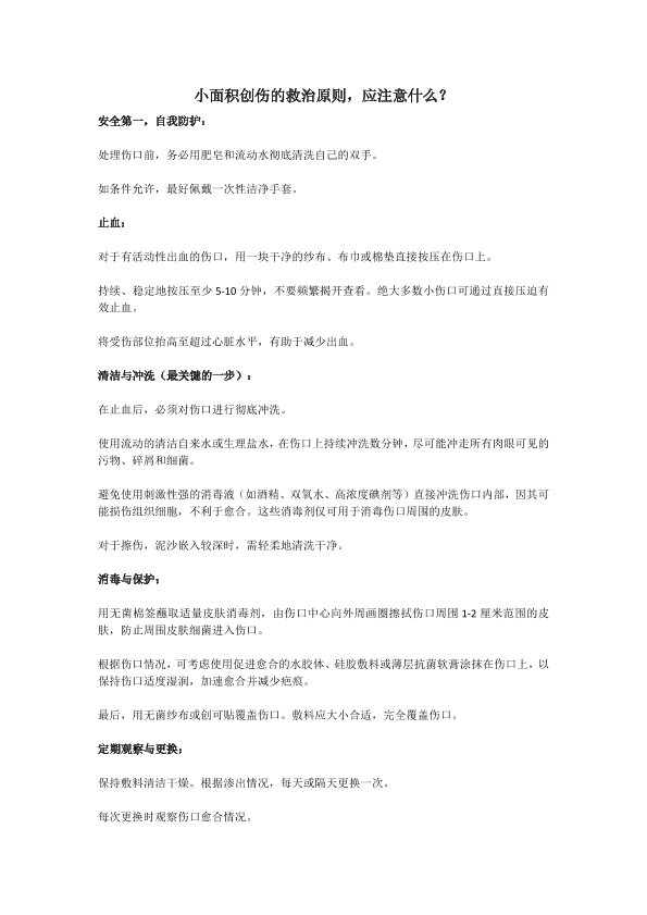 小面积创伤的救治原则,应注意什么?
