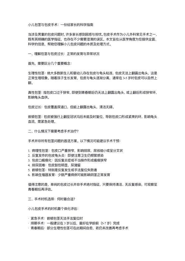 小儿包茎与包皮手术:一份给家长的科学指南