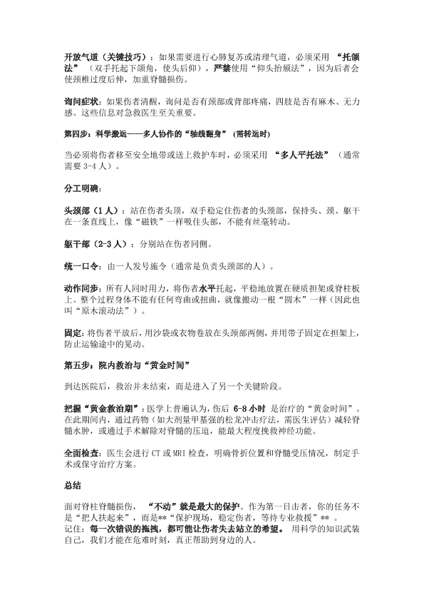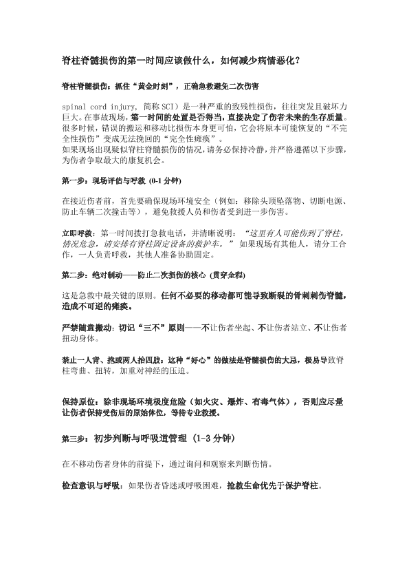 脊柱脊髓损伤的第一时间应该做什么,如何减少病情恶化?