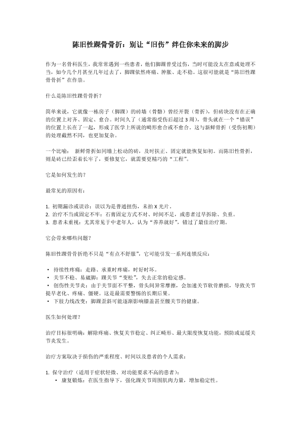 陈旧性踝关节骨折
