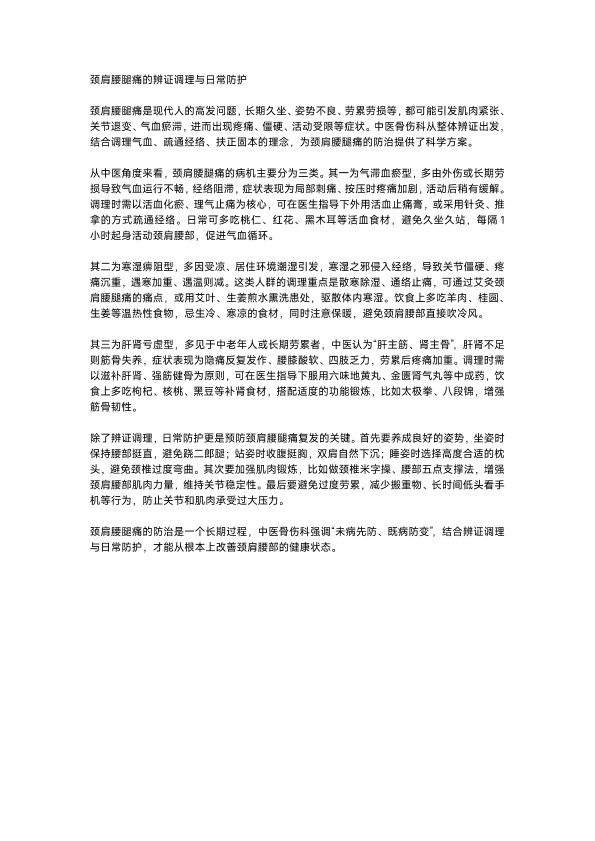 颈肩腰腿痛的调理防护