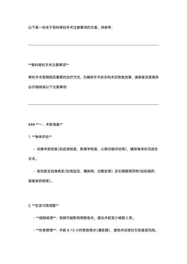 关于骨科脊柱手术文案
