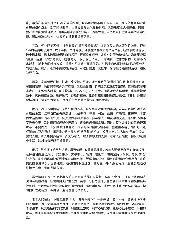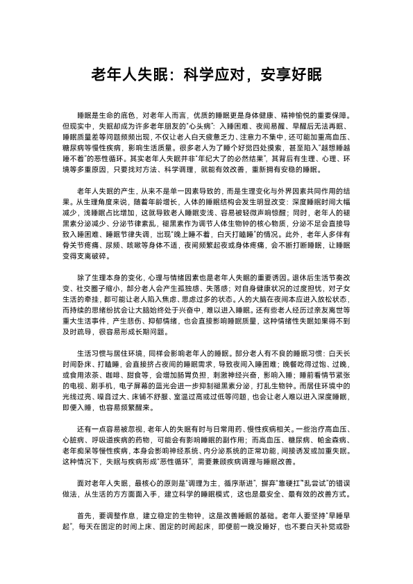 老年人失眠应对