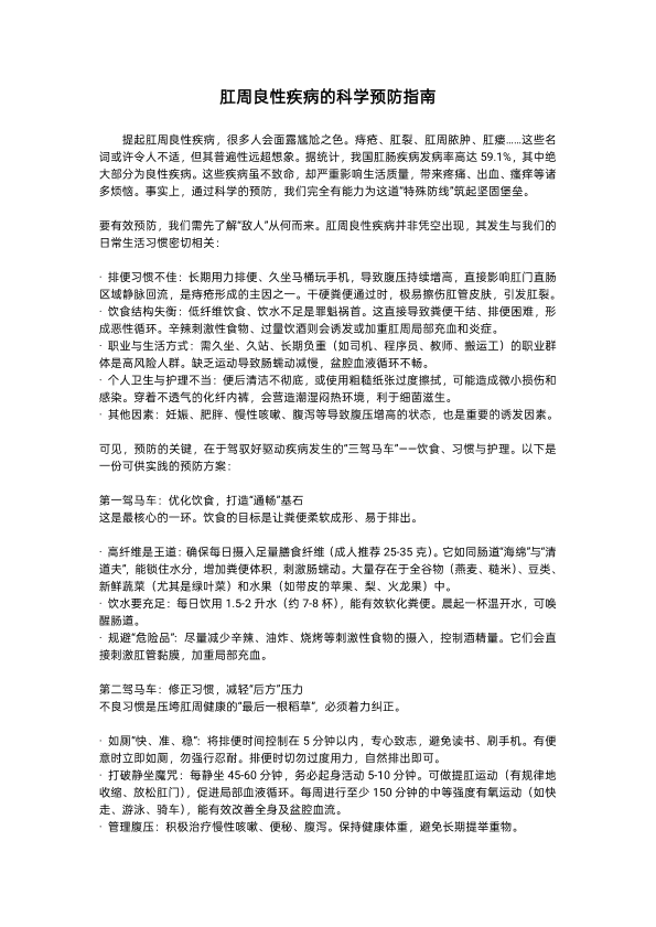 肛周良性疾病的科学预防