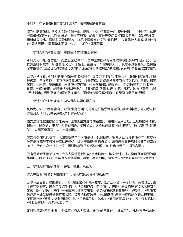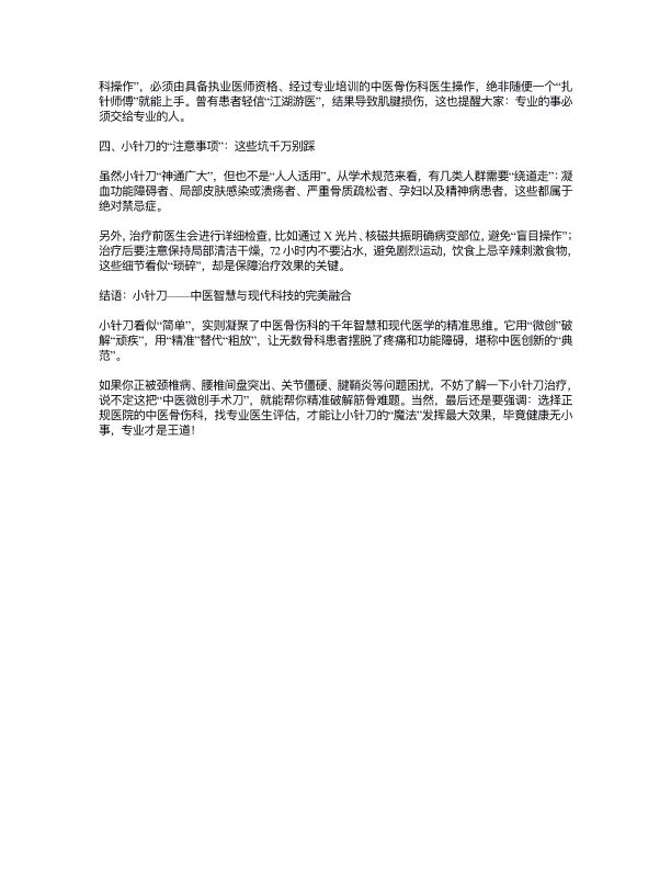 小针刀:中医骨伤科的“微创手术刀”,精准破解筋骨难题