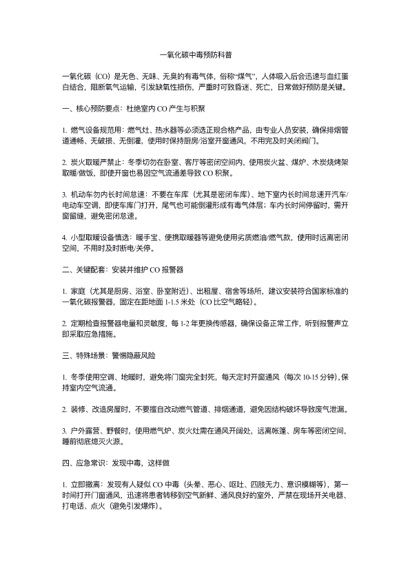 一氧化碳中毒的预防科普