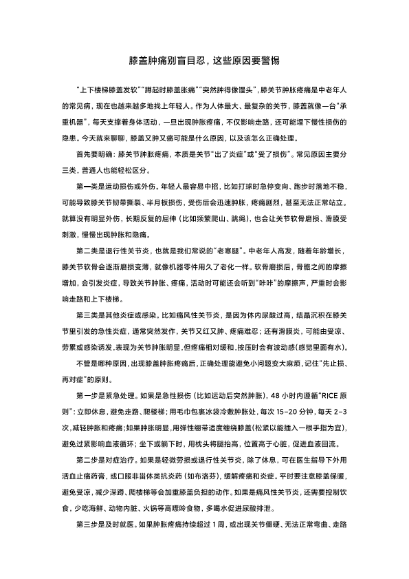 膝盖肿痛别盲目忍这些原因要要谨记