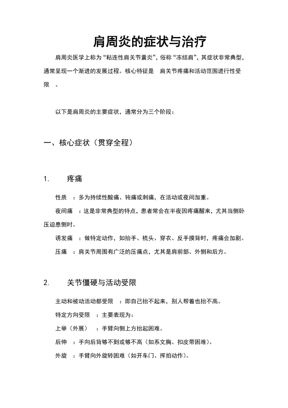 肩周炎的症状与治疗