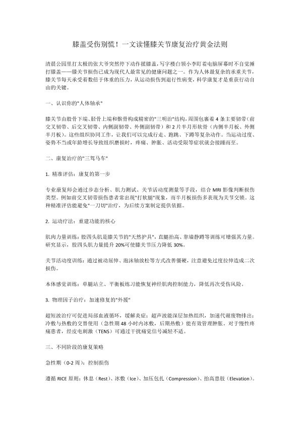 膝盖受伤别慌