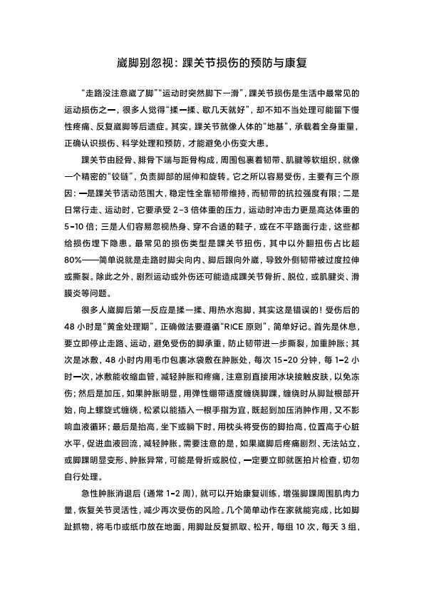 崴脚别忽视:踝关节损伤的预防与康复