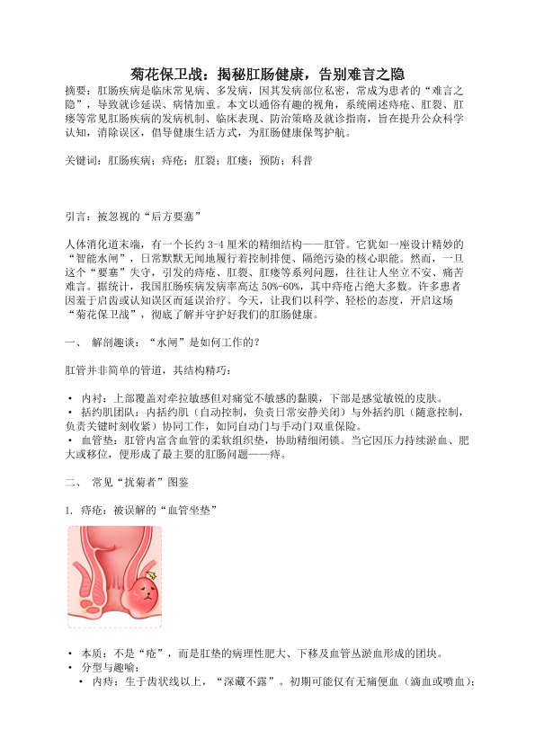 菊花保卫战:揭秘肛肠健康,告别难言之隐