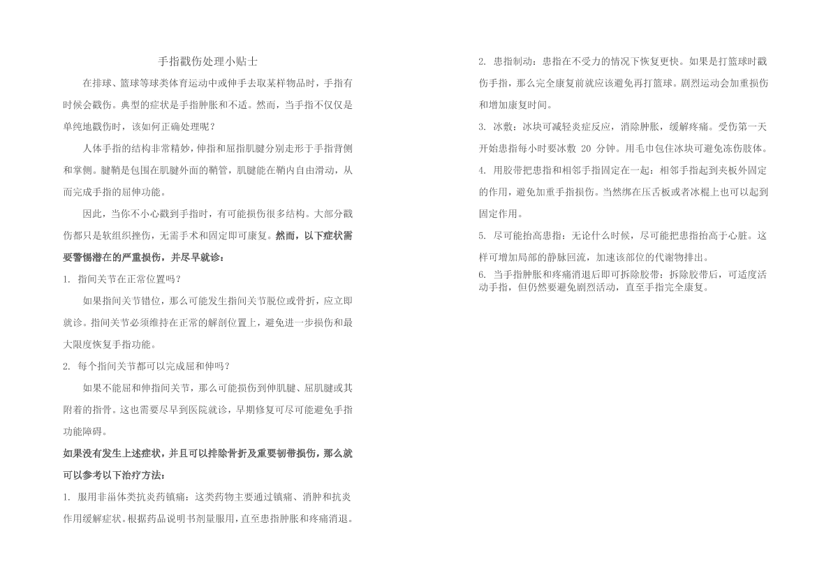 手指戳伤处理小贴士