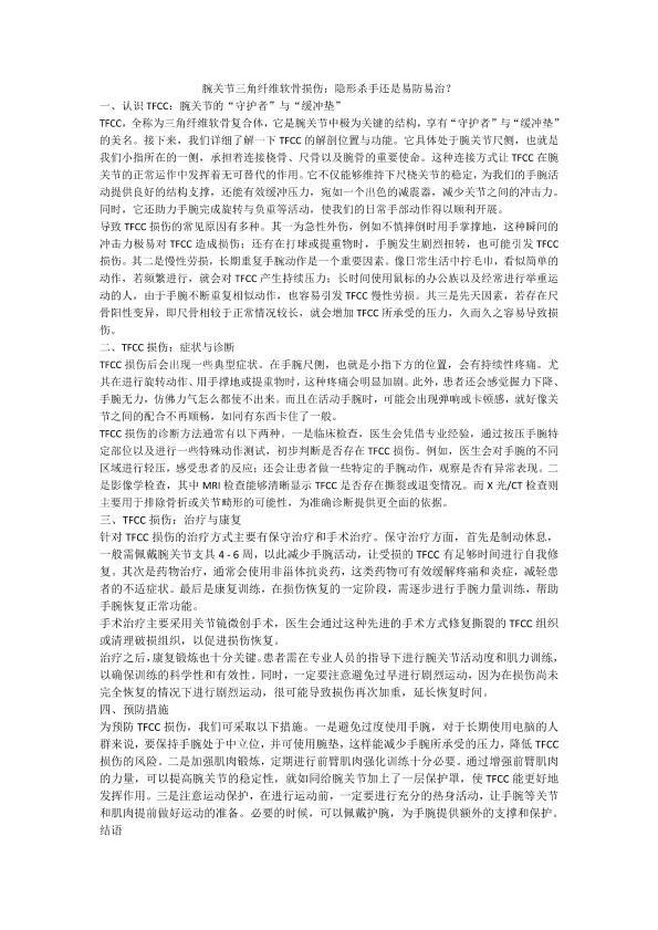 腕关节三角纤维软骨损伤:隐形杀手还是易防易治?
