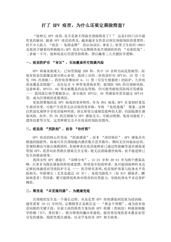 打了HPV疫苗,为什么还要定期做筛查?
