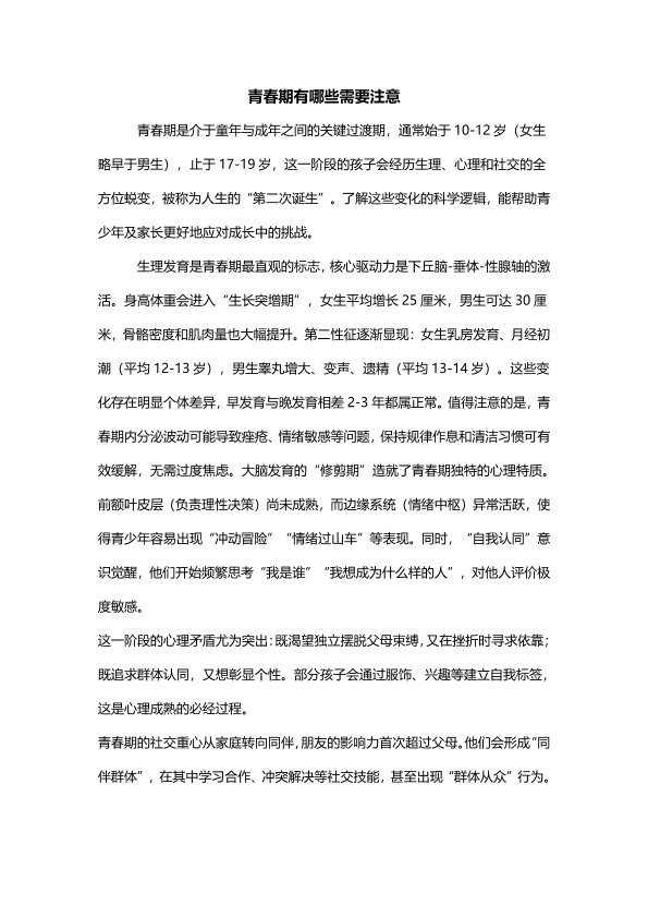 青春期有哪些需要注意