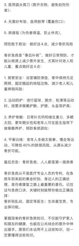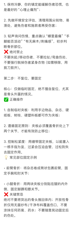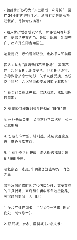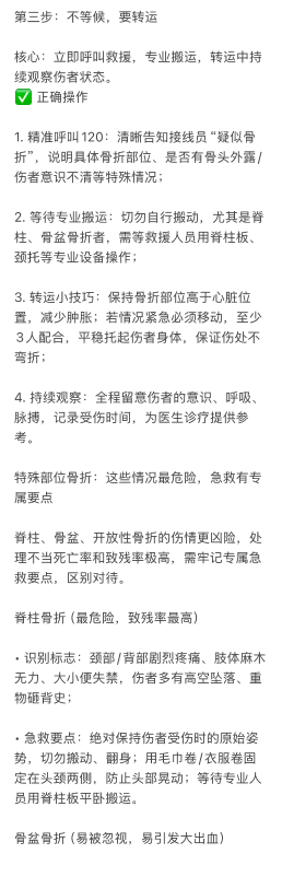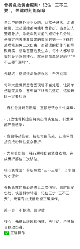 ⻣折急救⻩⾦原则 记住“三不三 要” 关键时刻能保命