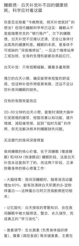 睡眠债 ⽩天补觉补不回的健康损 耗 科学应对看这篇