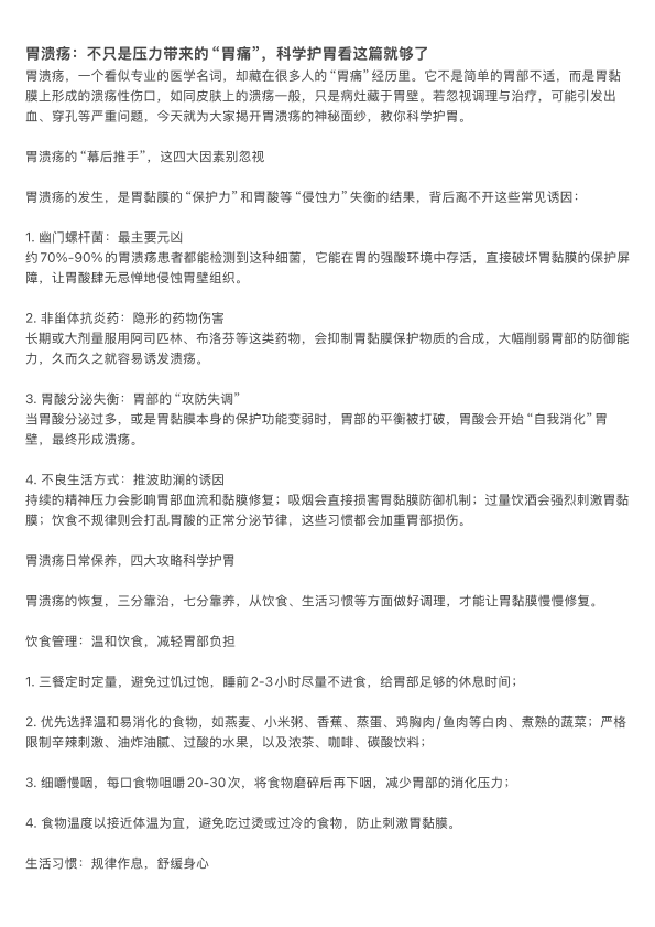 胃溃疡:不只是压力带来的“胃痛”,科学护胃看这篇就够了