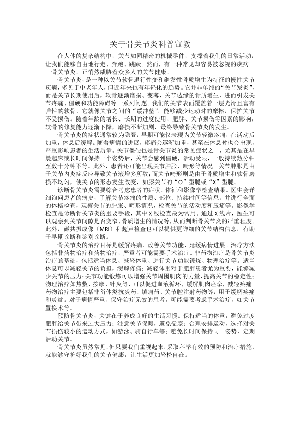 关于骨关节炎科普宣教