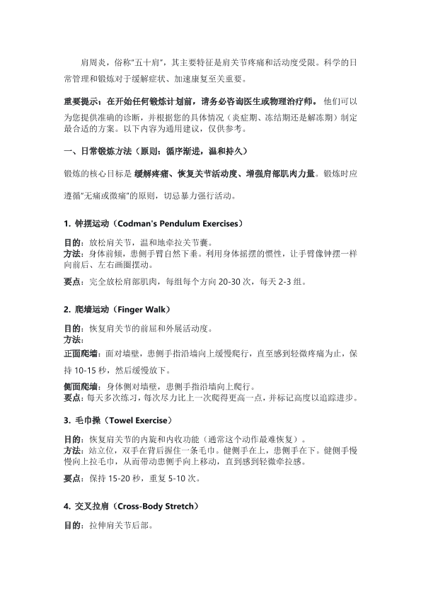 肩周炎的日常锻炼及注意事项